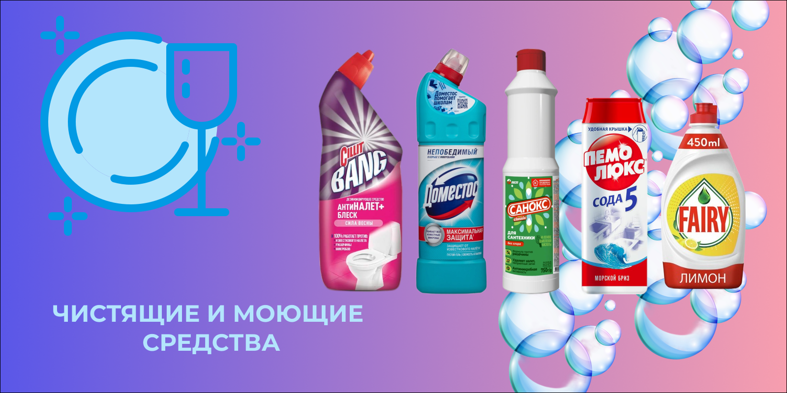 Стиральные порошки, жидкое мыло, отбеливатели, чистящие средства, средства для ухода за сантехникой, освежители...
