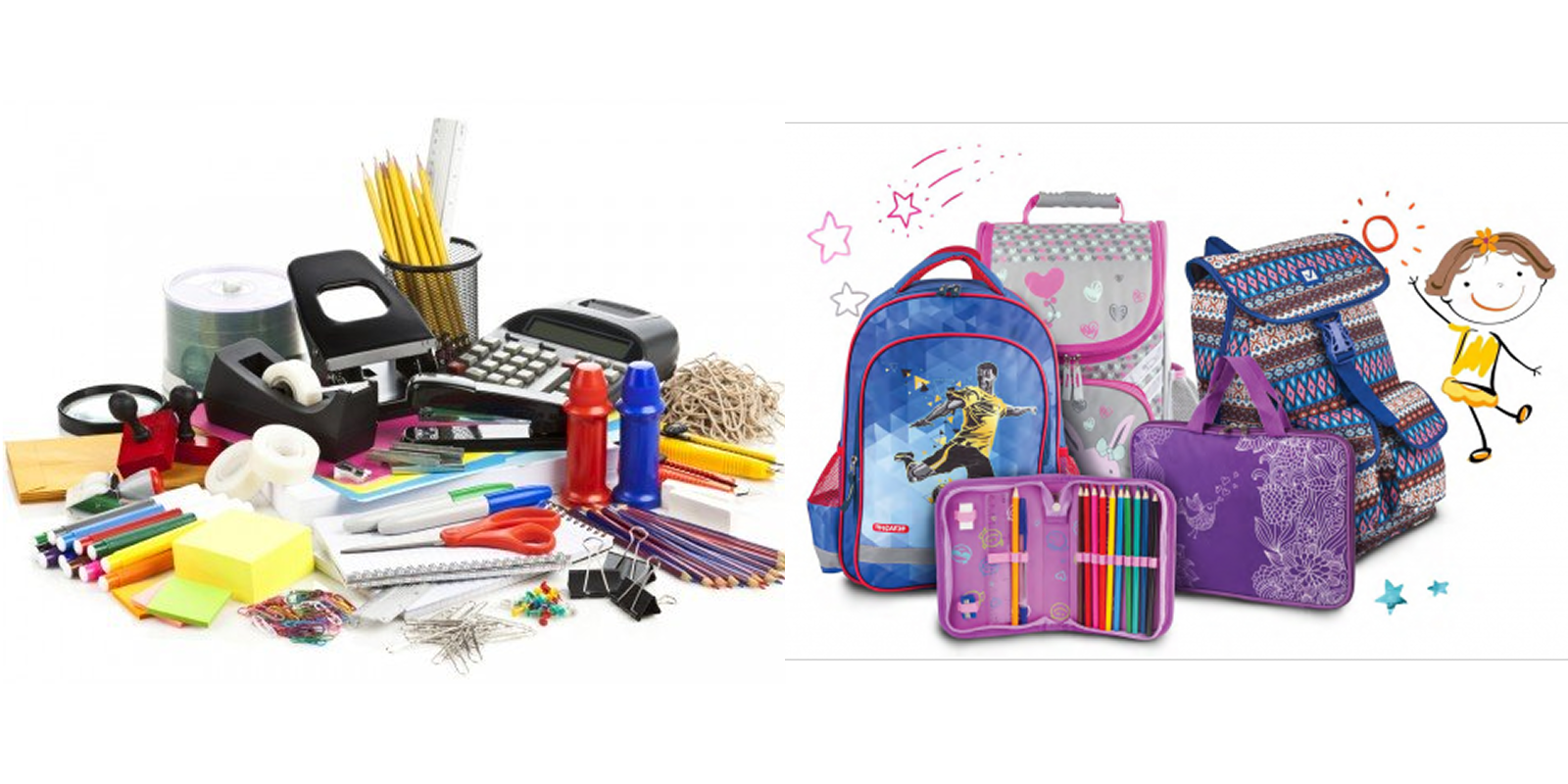 Дыроколы, степлеры, кнопки, скрепки, калькуляторы, флэшки, картриджи, батарейки...