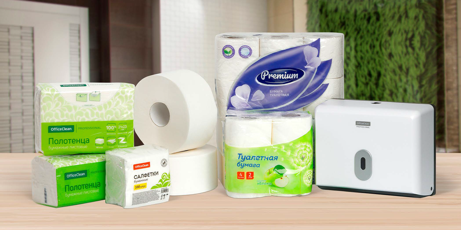 Туалетная бумага, бумажные полотенца, салфетки, влажные салфетки, диспенсеры для мыла...